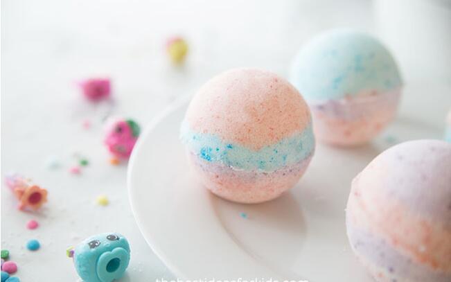 Эти ванные бомбы красочные и веселые для детей! Нам нравится, что вы можете спрятать маленькие игрушки и безделушки внутри, чтобы сделать время ванны особенным! Используйте Shopkins, небольшие динозавры или другие маленькие игрушки, которые будут помещаться внутри форм.